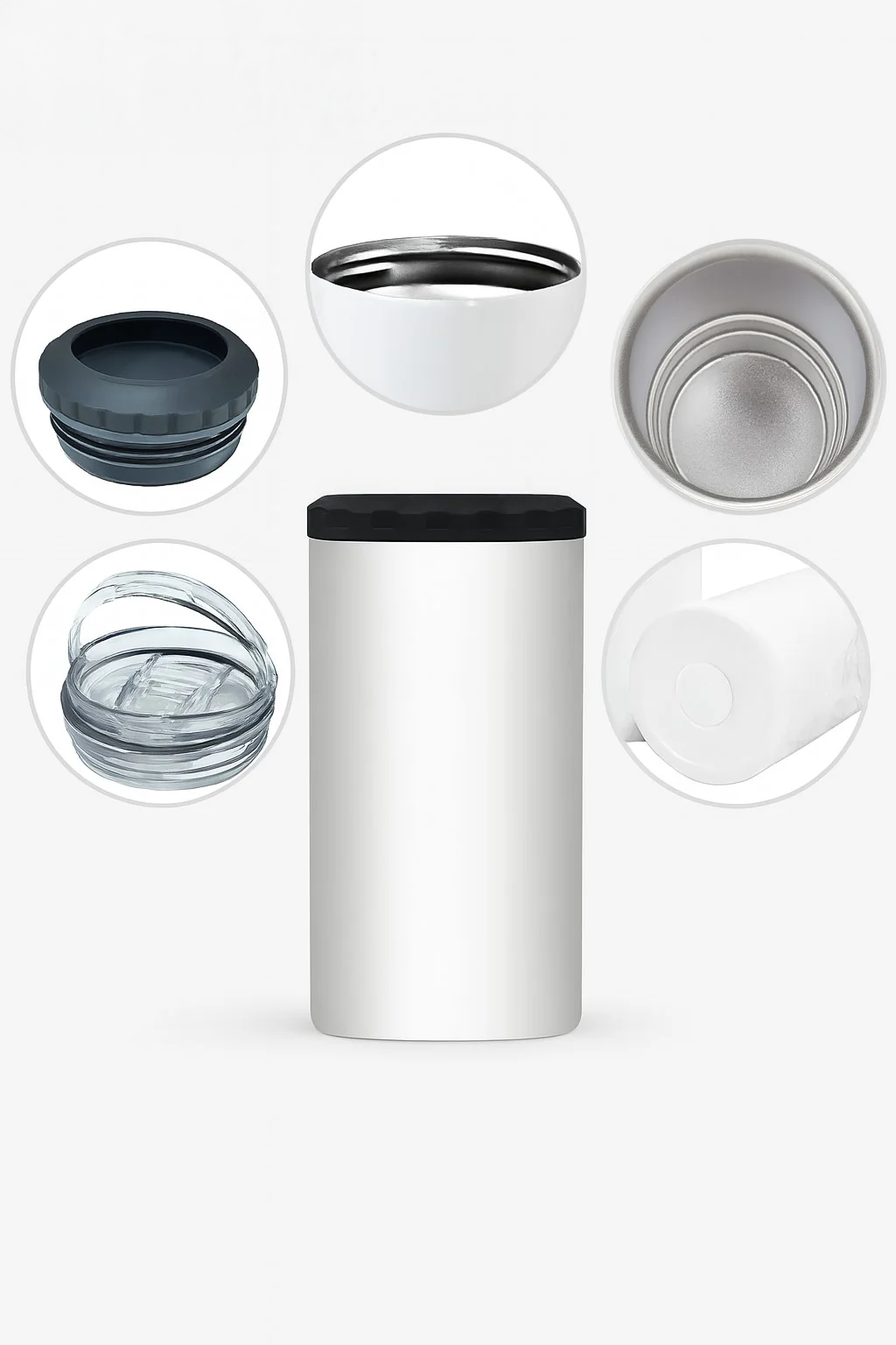 - Accessoires : 1 couvercle étanche, 1 paille métallique, 1 brosse à paille, 1 base antidérapante